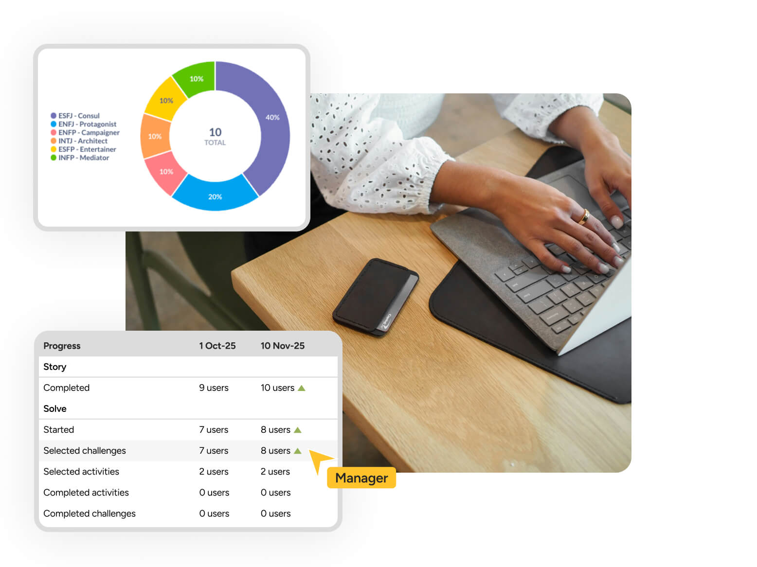 Get started todayWe know you want to grow your people, but you're busy. We enable you to focus on leading - not coaching - and you're people, to own their own development.