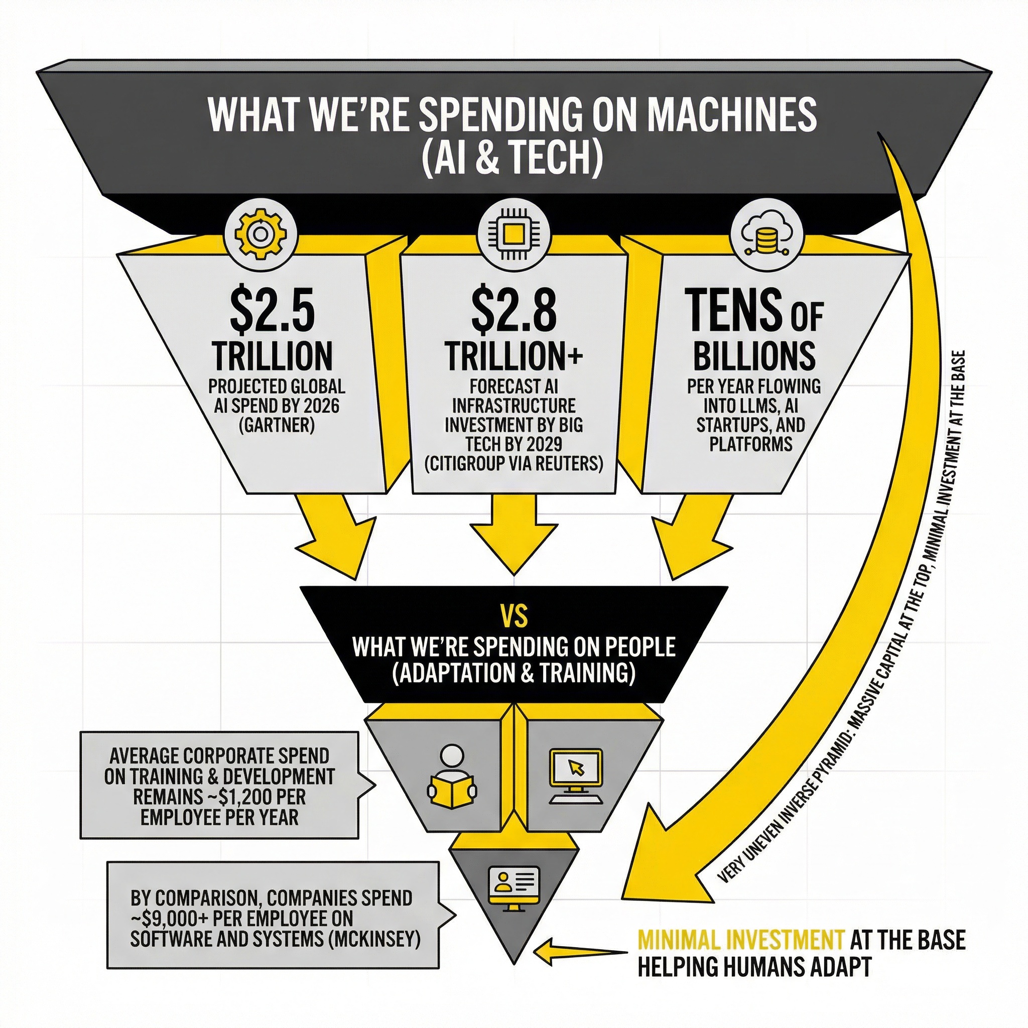 - Tens of billions per year flowing into LLMs, AI startups, and platforms